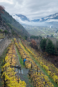 The thin, rocky soils provide a stressful environment where vines must work hard to survive. Along with the diurnal temperatures, this stress allows for the production of richly flavored, concentrated wines. The dramatic topography and diminutive size of the valley mean that the area available for viticulture is limited and finite. As much of the valley floor, with its mineral-rich, well-watered soils, is simply too fertile for quality viticulture, the best Valle d’Aosta vineyards begin on the lower slopes and climb to altitudes of around 1200 meters above sea level.